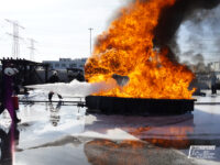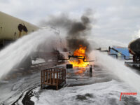 In den Folgetagen wurden weitere Trainings in horizontalen und vertikalen Anlagen durchgeführt. Die Brände waren hierbei sowohl durch Gase, als auch durch brennende Flüssigkeiten erzeugt, so wie es im industriellen Bereich z.B. nach einer entsprechenden Leckage auch in der Realität sein könnte. Schließlich mussten auch ein großer Flüssigkeitsbrand sowie ein brennender Großtank durch die Flörsheimer Einsatzkräfte gelöscht werden. Ebenso galt es, Brände an Kesselwagen und einer Verladestation inverschiedenen Facetten zu absolvieren.